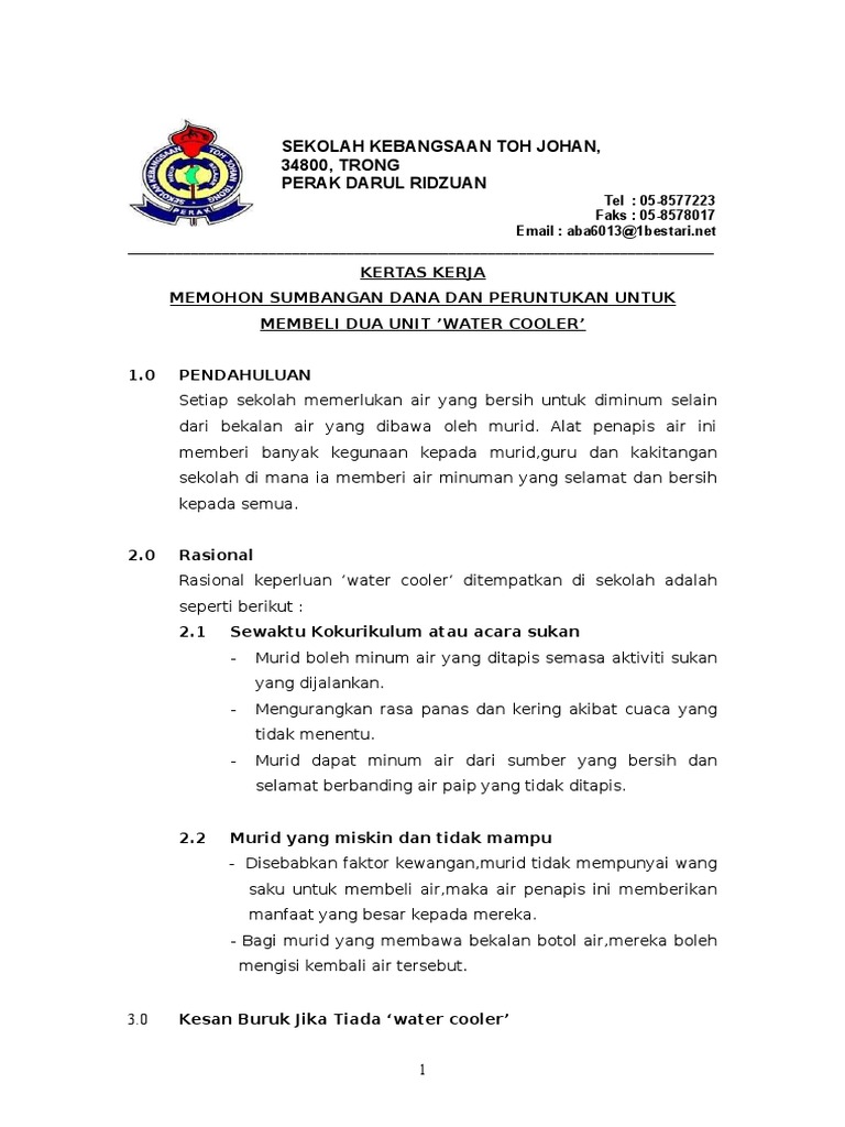 Nyatakan 2 kriteria yang diambil oleh Kerajaan Persekutuan untuk memberi. Pengertian Proposal Berdasarkan KBBI proposal merupakan rencana yang. Surat Mohon Bantuan YB.